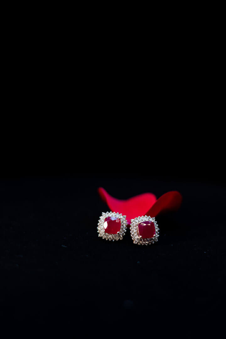 (Diamond) Ruby Halo Earrings