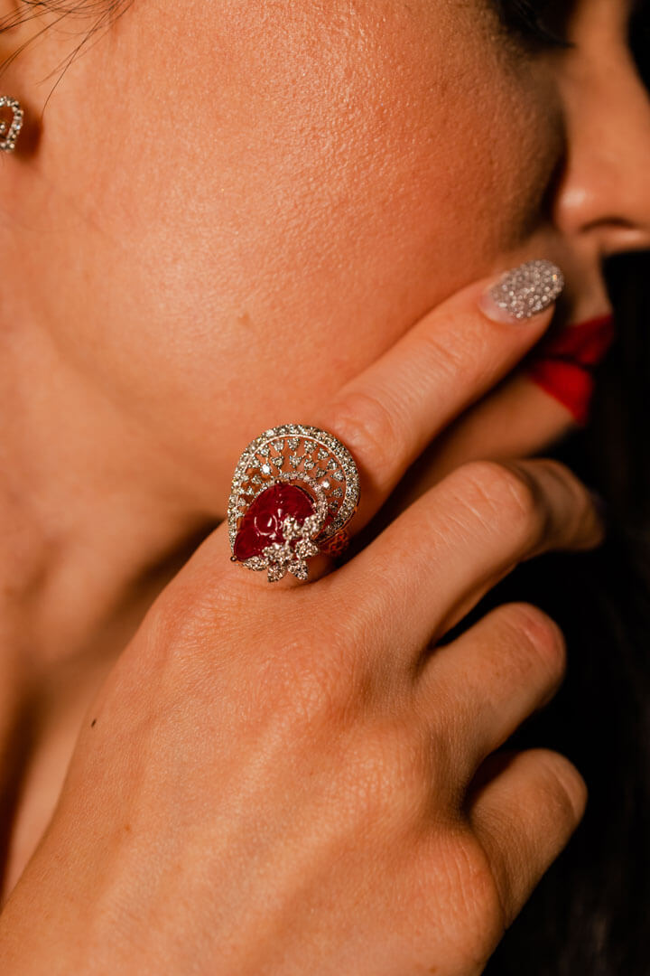 Red Statement Halo Ring